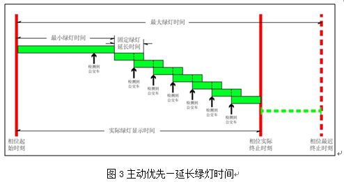 當交叉口信號為綠燈但又不足以讓優先車輛在當前相位通過時,為使優先車輛不停車通過交叉口而延長本相位綠燈時間。信號周期的不確定性對于路口其他社會車輛的通行影響較大。