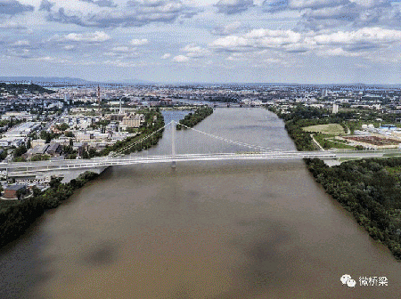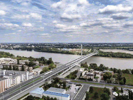 新多瑙河大橋跨越420米寬的河床,位于Ujbuda區和Csepel島之間的新公路連接處。