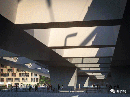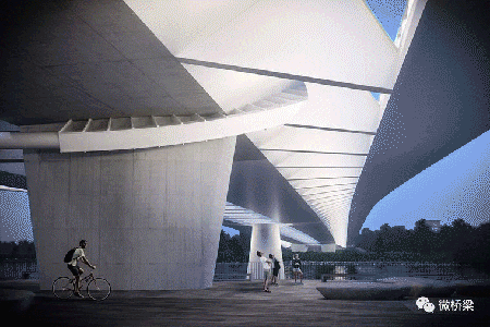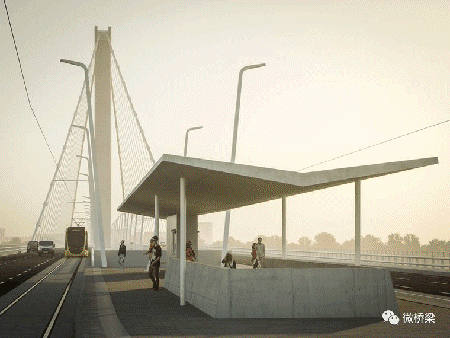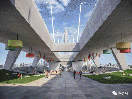 除了一般的外觀,橋梁的建筑解決方案強烈關注人類互動。目的是在結構,河流和移動的人之間創造有趣的,不斷變化的空間關系,從而喚起情感并提供獨特的穿越個人體驗。同樣重要的是將橋梁的周圍環境形成有機地連接到該地區城市發展的高質量空間,特別是沿著河流朝向KopasziGát和北部的Csepel公園區域。分裂的上部結構在橋腳處提供了一個光照空間。作為布達河岸長廊的一部分,進場橋作為一個活躍的多功能廣場,成為城市環境的有機組成部分,為橋梁的社會融合和可持續發展提供服務。