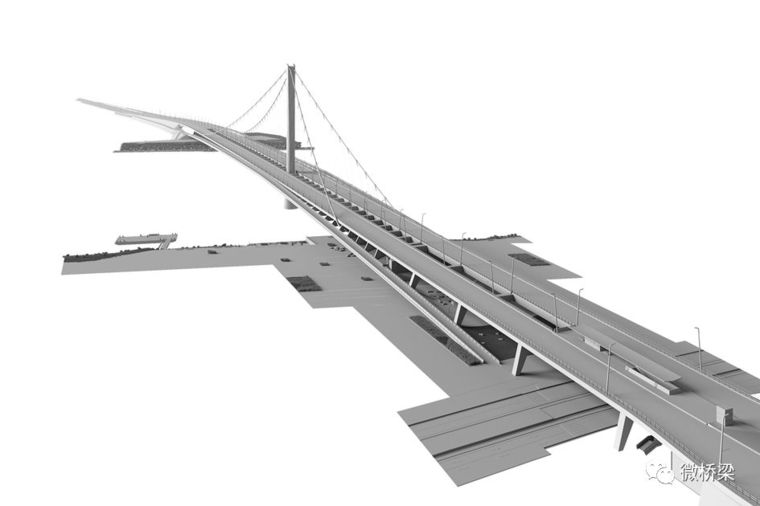 引橋橋梁結構的總系統長度為30.0 + 45.5 + 2 x 38.0 + 33.0 = 184.50 m。引橋和主橋的總長度為184.5 + 5.0 + 564.0 = 753.5 m。