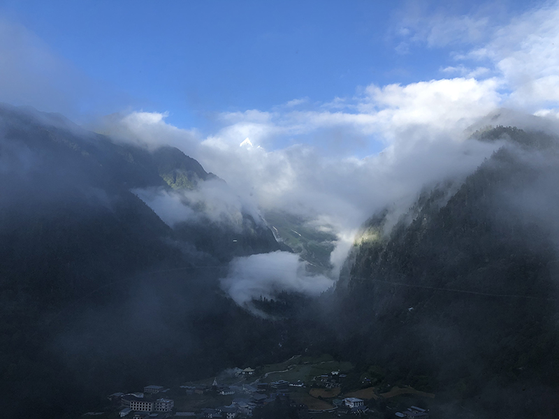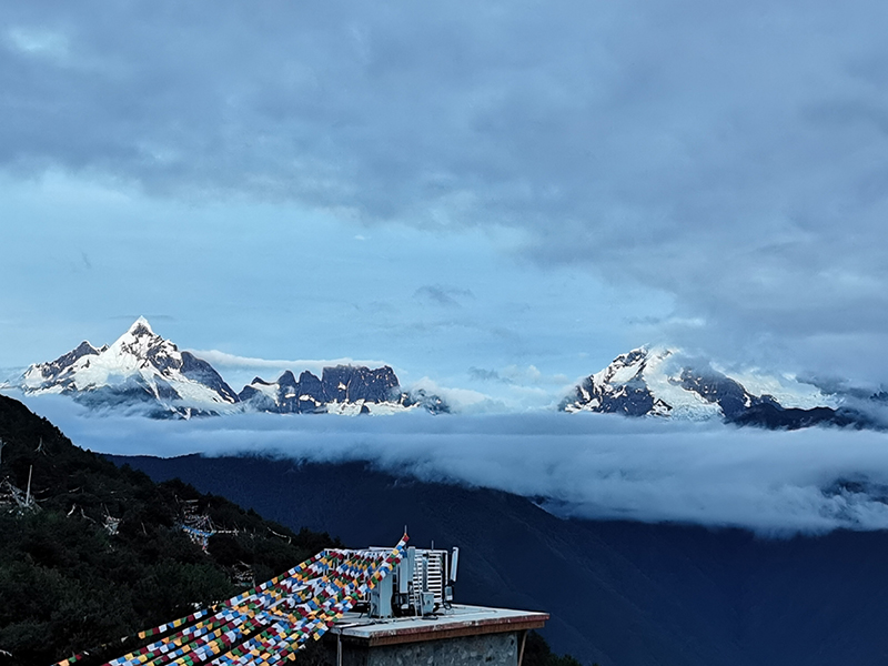 為適應(yīng)雨崩的高原氣候,防止高反,更是為觀賞和拍攝只有特定的時間特定的地點才能看到日照金山奇觀,特意在吉祥飛來寺住宿一晚。