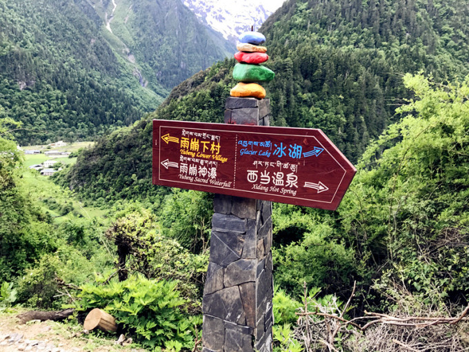 從飛來寺前往西當溫泉,跟隨指示牌就是徒步進村的起點。從西當?shù)接瓯来宓倪@段路只能徒步或乘坐指定越野車進入,此路段是不允許外地車輛進入。