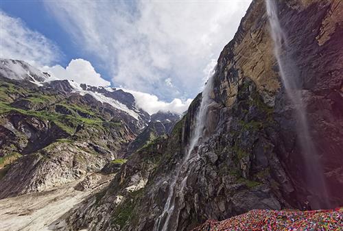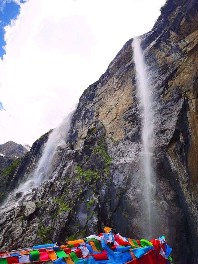 神瀑的魅力不在于它的美,而在于它的神,神瀑相對于其他瀑布,沒有飛流直下三千尺的神采,更沒有氣吞萬里如虎的氣韻,它的神奇之處在于水不大,沖擊力小,瀑布下面不是水潭而是一片石灘,這就讓人可以直接走到瀑布底下,沐浴神圣之水。它是圣山融下的水,對于藏民來說,神瀑之水就如同神賜與他們的圣水,每年都會有無數(shù)的藏民轉(zhuǎn)山朝拜,歷盡千辛萬苦,只為沐浴一下神瀑之水,洗去今生所有的罪孽,整個人就會如同脫胎換骨。圍繞神瀑順時針轉(zhuǎn)三圈,讓神瀑之水傾瀉到身上,身上越濕,說明神的賜福越多。 說雨崩瀑布是卡瓦格博尊神從上天取回的圣水,能占卜人的命運,還能消災(zāi)免難,賜恩眾生。藏傳佛教信徒朝拜梅里雪山,必定沐浴雨崩圣瀑。也終于理解了各處的藏民為什么會絡(luò)繹不絕的來到神瀑,在這里沐浴,除去污垢,讓心靈得到凈化。
