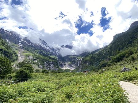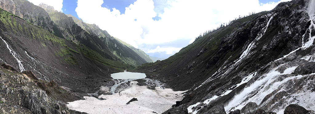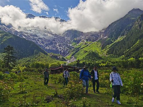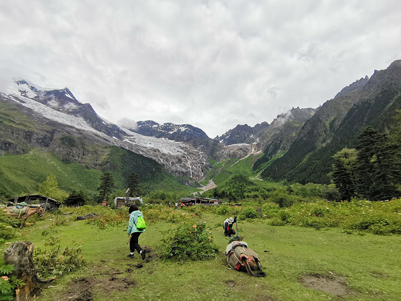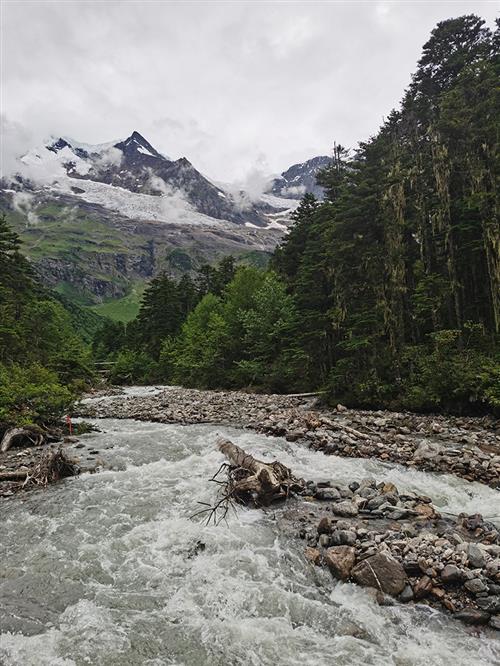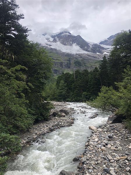 對于徒步者來說,冰湖只是個地點,最主要的是腳下的路和沿途的風景。爬完這段山路,笑農(nóng)埡口之前的前半程主要在原始森林里穿行,道路濕滑泥濘,最好按照指定路線行走,如果沒有路牌可以靠垃圾桶辨認方向,隨意走野路很容易迷路,過笑農(nóng)埡口后以平路和緩坡為主,最大的挑戰(zhàn)是笑農(nóng)大本營到冰湖的一段上坡,坡度大到變態(tài)。途中部分路段可騎馬,但需要提前從村子預(yù)定才行,而且許多險峻陡峭路段需要下來自己走,期間需要不定時吃些補給的食物,前進。。。冰湖。