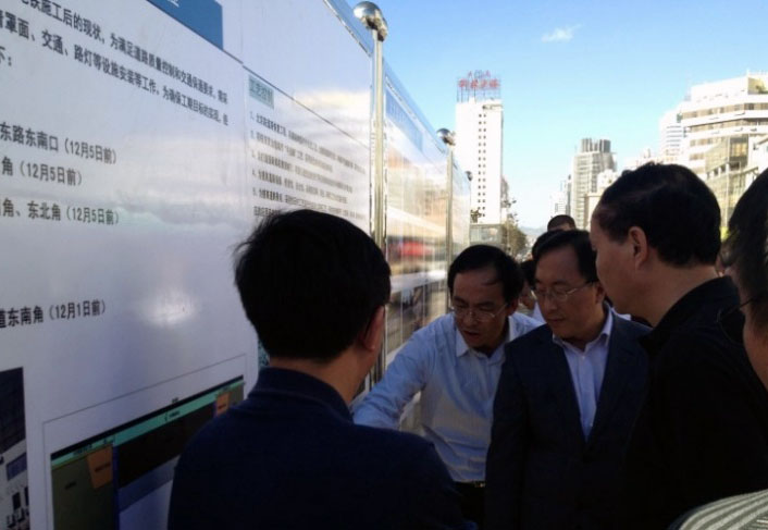 ?2013年11月13日星期三,昆明市有關領導視察指導北京路道路恢復提升工程,盡量確保在今年12月20日前,將一條高標準、精細化打造的“春城第一大道”(北京路)如期交付。城市發(fā)展從這里加速,您的諒解是最大的支持!